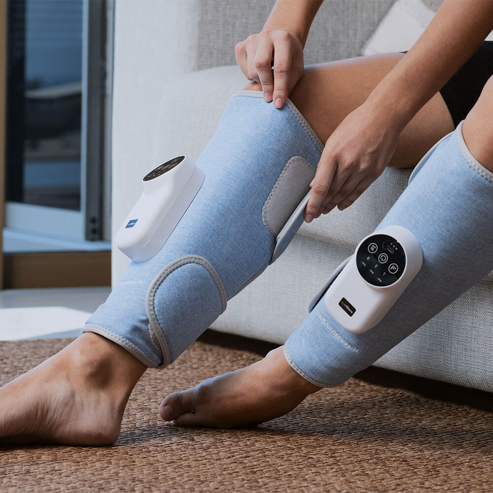 Experience instant calf comfort with RelCompress™, your cordless and on-the-go solution for deep muscle relaxation. These pair of 2 portable sleeves offers dynamic compression with three modes, adjustable heating levels, and customizable intensity for tailored comfort. Its easy-to-adjust Velcro straps ensure a perfect fit for all sizes, making it ideal travel companion. With RelCompress™, experience the shift from tension to relaxation, anytime, anywhere.